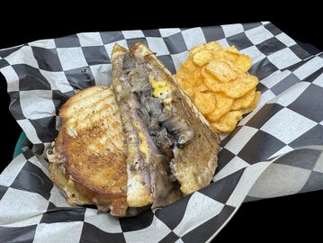 A generous portion of sliced Angus roast beef & melted pepper jack cheese topped with sautéed mushrooms & onions then perfectly toasted on Neighbor's Best multi-grain bread. Served with a side of Au Jus.